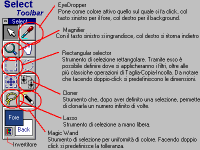 | Fig. 2 - Toolbox Select. Strumenti di selezione e visione |