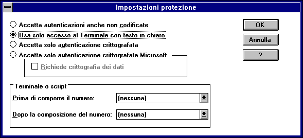 prima voce "Accetta autenticazioni anche non codificate" e dalla listbox "Dopo la