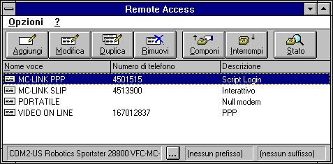 Fig. 6 - L'aspetto finale del RAS configurato per i provider Internet.