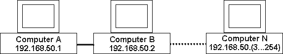 Nella classe A nel primo ottetto è definito il numero di network e nei rimanenti quello di host. Sono così definibili 1,6 milioni di host per un network. Nella classe B primo e secondo sono il numero del network e terzo e quarto quello di host. Abbiamo allora 16320 network disponibili con 65024 host per ognuno. Nella classe C i primi tre sono il numero di network e il restante quarto quello di host. Circa 2 milioni di network con 254 host disponibili. ![]()
