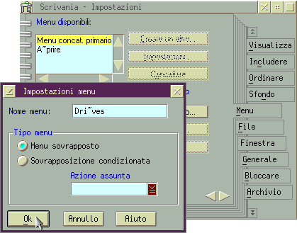 - Selezioniamo nella listbox Menu disponibili: la voce del menu primario di cui intendiamo creare un submenu (esempio: Dri~ves).