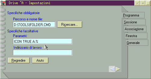 - Alla pagina Sessione selezioniamo: OS/2 finestra, Avvio ridotte al minimo, Chiudere finestra al termine