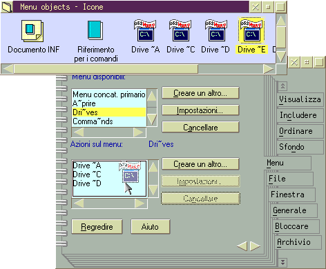 Per quanto riguarda i file di dati è necessario risalire al programma usato per l'apertura, creando, nel caso dovessimo aggiungere al menu molti file dello stesso tipo, delle maschere, con la stessa procedura usata per FOLDER.CMD. Se intendiamo per esempio aggiungere una voce di menu primario Informazioni, che permetta di aprire tramite il relativo submenu diversi file INF, sarà utile creare una maschera dell'oggetto VIEW.EXE. In breve:
