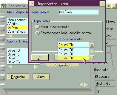- Nel drop down Azione assunta selezioniamo l'azione di default (esempio: selezionando Drive ~D è sufficiente cliccare sulla voce di menu Drives per aprire la cartella Drive D, mantre sarà necessario cliccare sulla freccia e selezionare una voce dal submenu per aprire un altro drive).